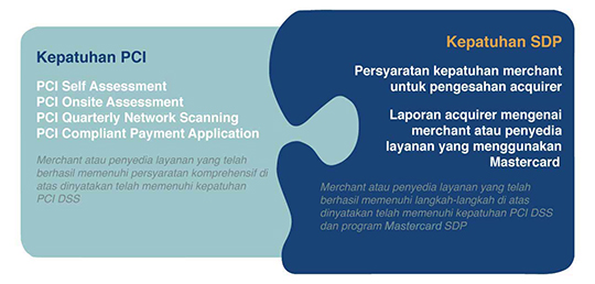 Program SDPs, dengan PCI DSS sebagai landasannya, merincikan keamanan data dan persyaratan kepatuhan validasi yang diperlukan untuk melindungi disimpan dan ditransmisikan Mastercard data akun pembayaran.